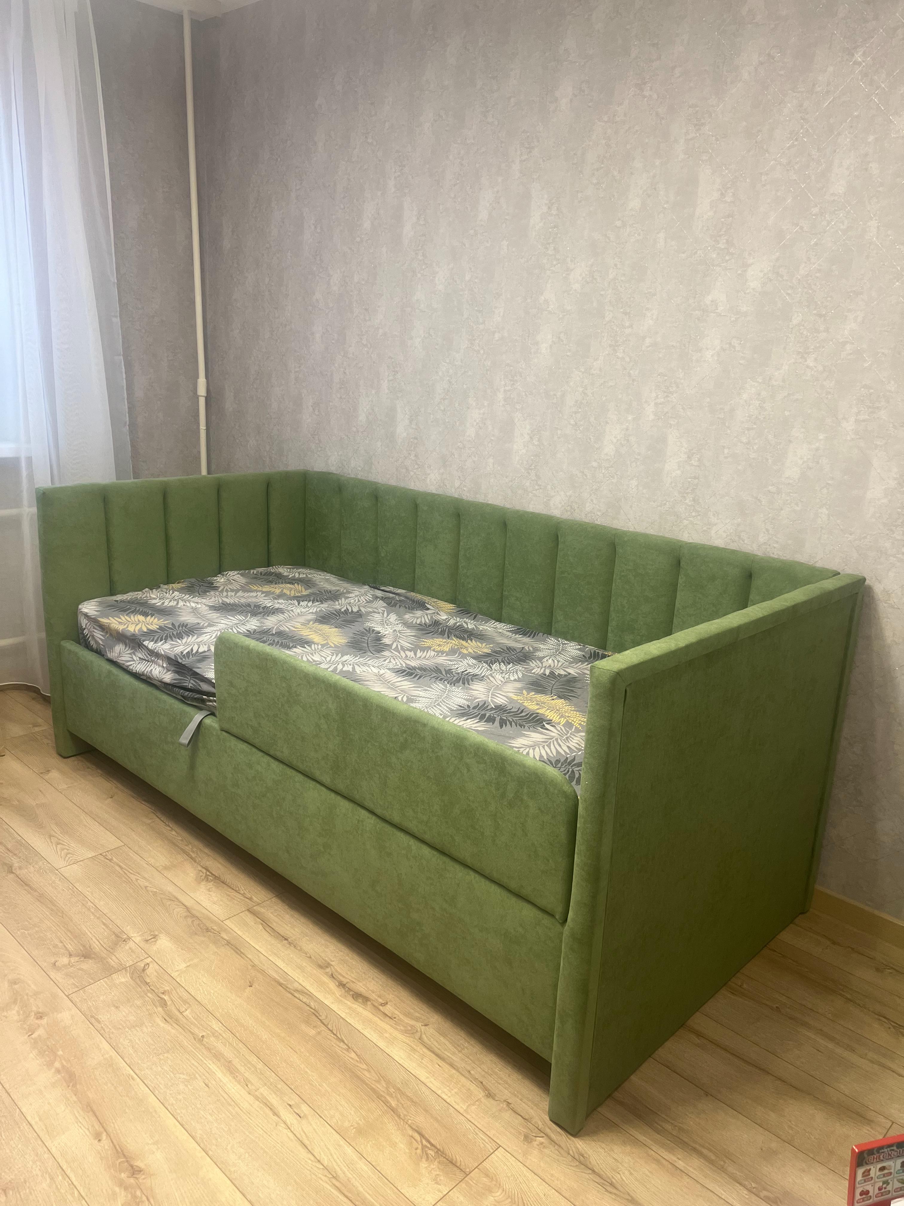 Односпальная кровать Alice с высокими боковыми спинками. Модель универсальна для квартир с небольшой площадью, детских и подростковых спален, гостевых комнат. Мягкие элементы создают атмосферу уюта, а благодаря размерному ряду, защитному бортику, множеству цветов и фактур кровать подойдет как малышам, так и подросткам, как мальчикам, так и девочкам. Защитный бортик приобретается дополнительно, легко устанавливается на левую или правую сторону кровати. Увеличенная прочность кровати достигается за счет сочетания усиленных металлических уголков, центральной царги и закладных деталей. Модель укомплектована ортопедическим основанием, при желании в нее можно установить подъемный механизм с бельевым коробом. Опоры отсутствуют, функцию опор выполняют основная и боковые спинки. Расстояние до царги способствует легкой уборке под кроватью, в том числе роботом – пылесосом. Исполнение доступно во всех видах ткани