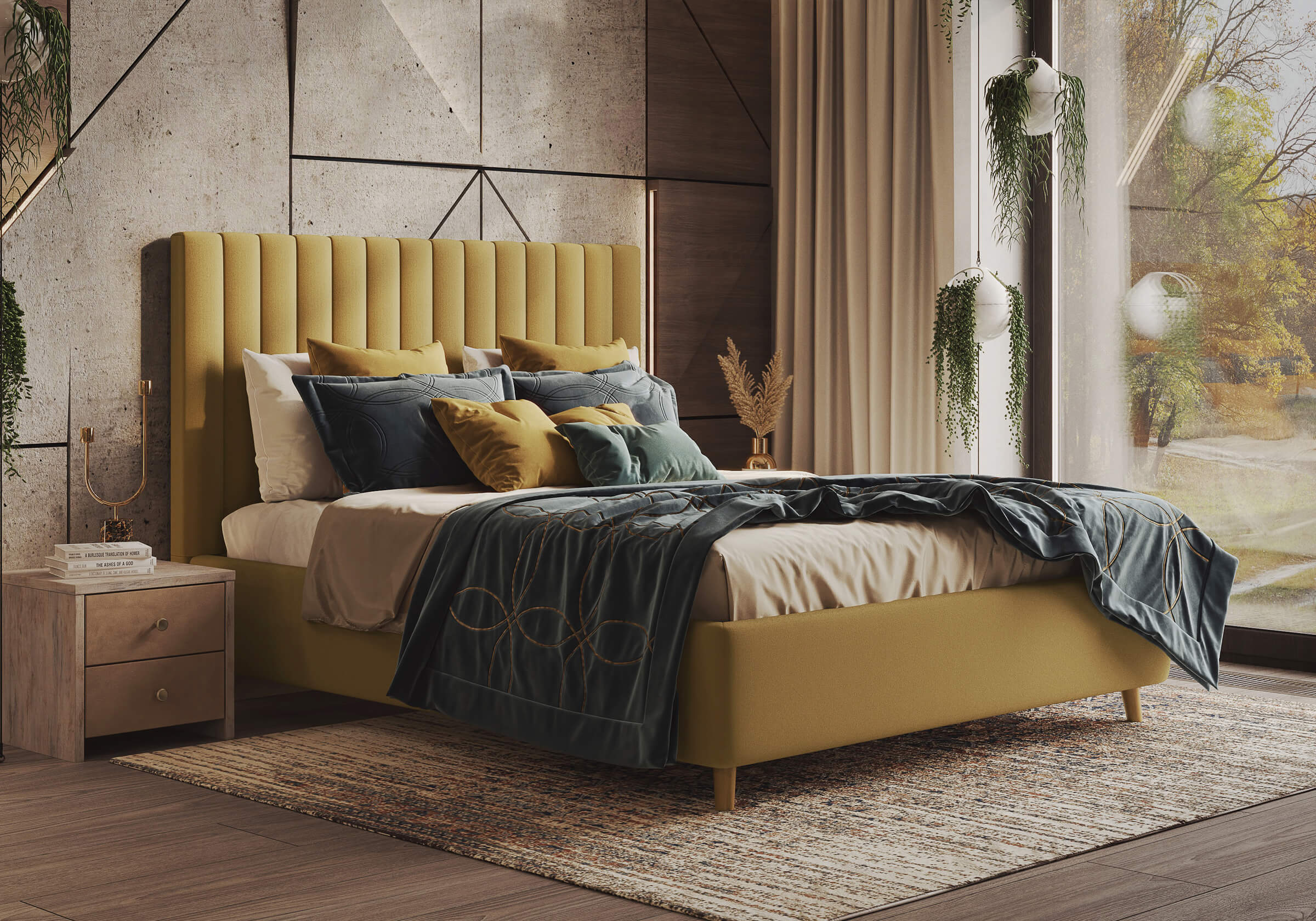 Основание кровати на деревянных ножках. Благодаря увеличенной высоте позволяют осуществлять легкую уборку под кроватью, даже с помощью робота-пылесоса.