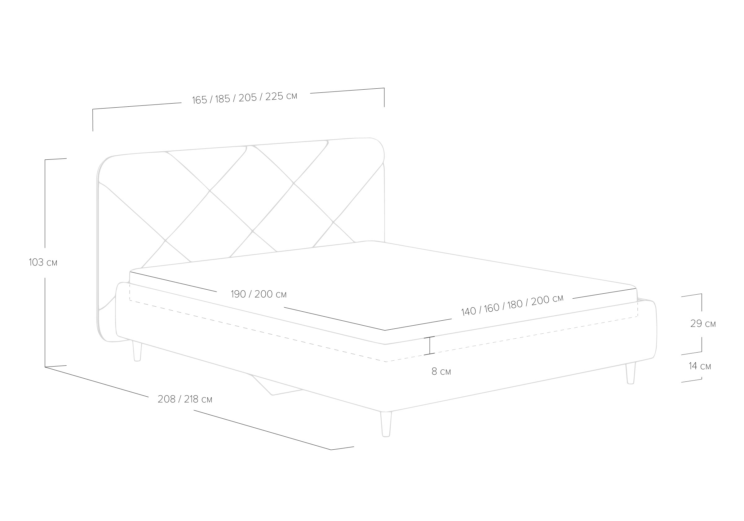 Основание кровати на деревянных ножках. Благодаря увеличенной высоте позволяют осуществлять легкую уборку под кроватью, даже с помощью робота-пылесоса.