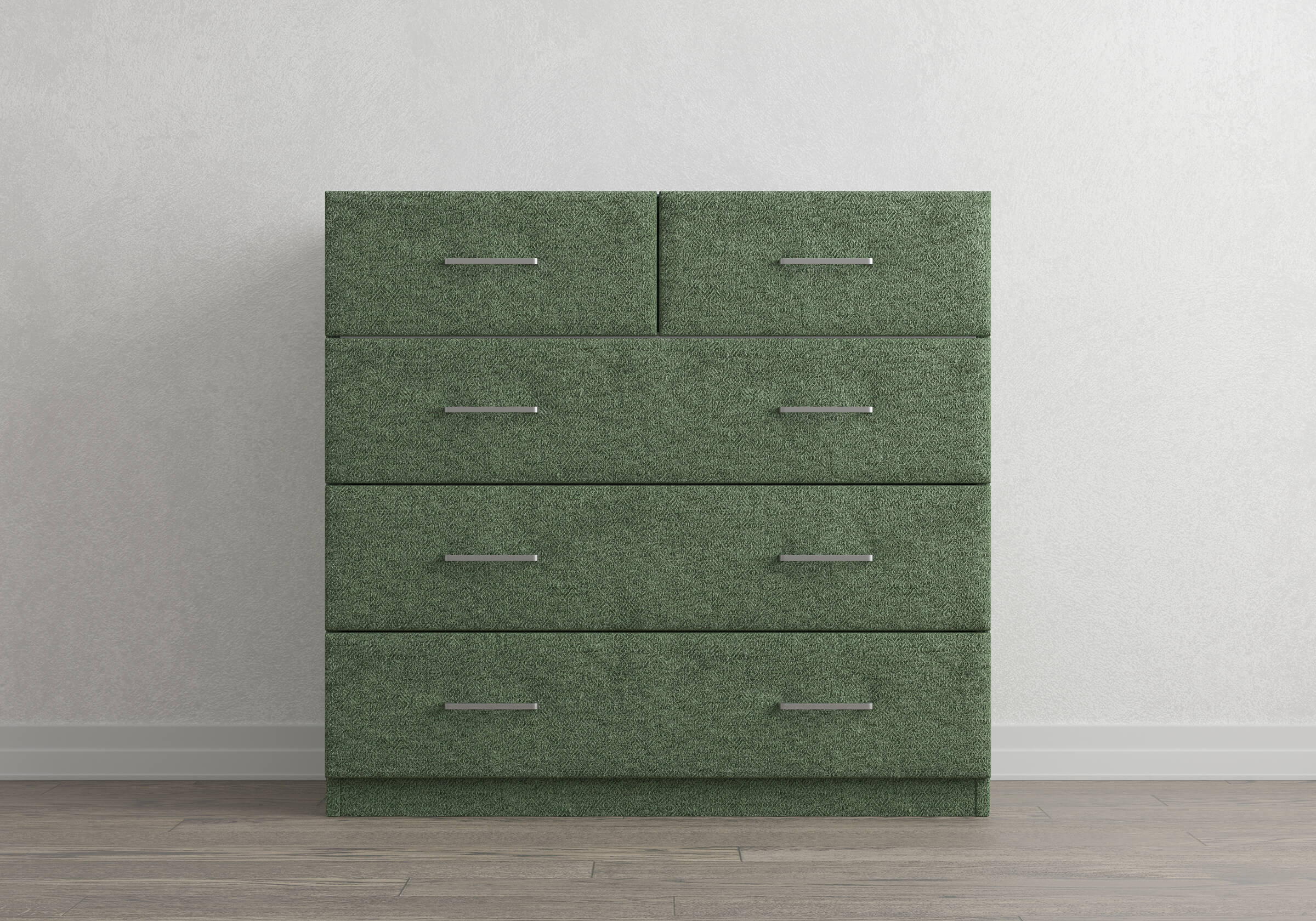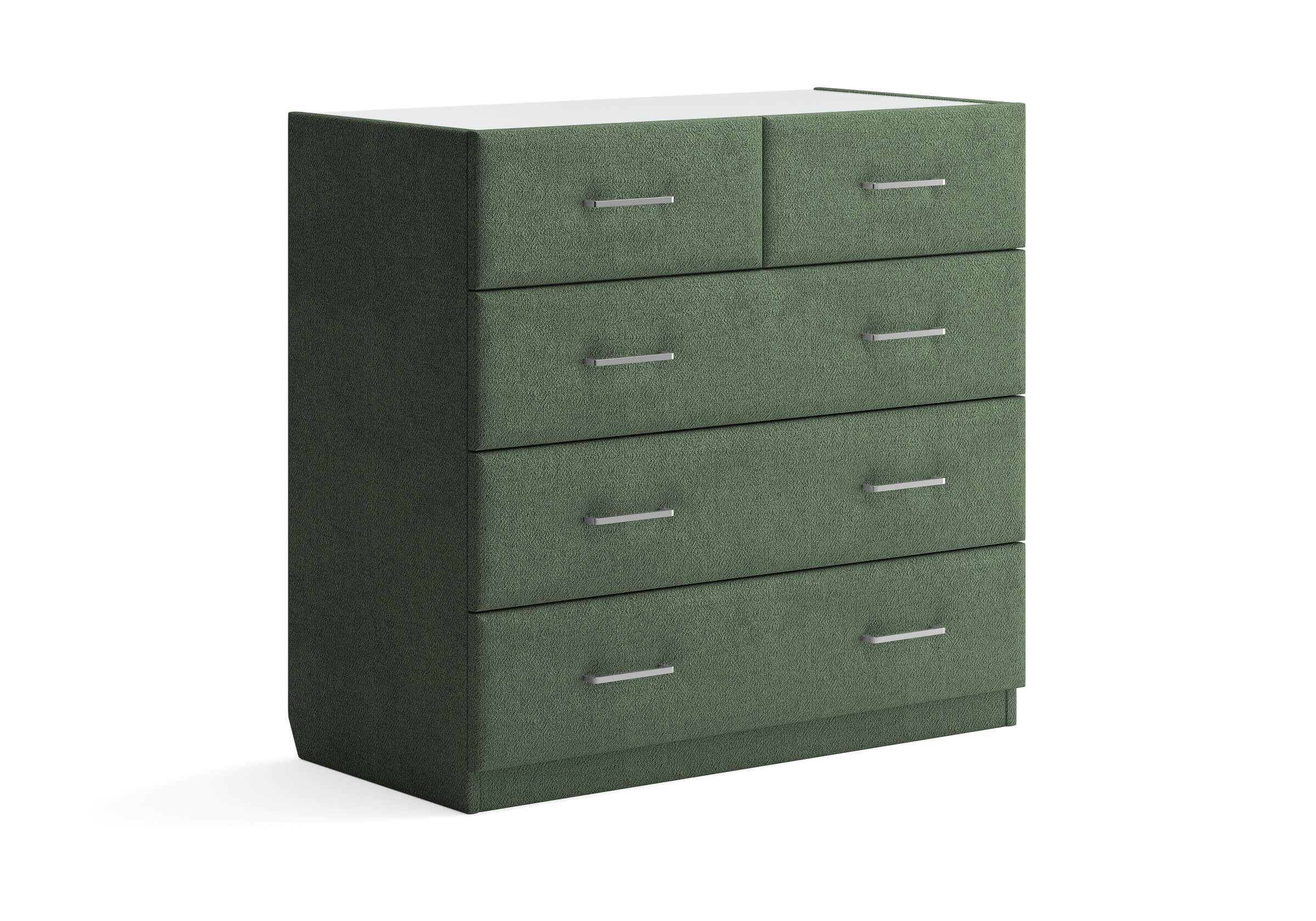 Комод Nolan - универсальная модель, которая отлично подойдет для большинства современных интерьеров. Прямые линии, минималистичная фурнитура, широкий выбор фактур и цветов исполнения. Пять выдвижных ящиков с направляющими скрытого монтажа оснащены доводчиками. Комод дополнительно можно укомплектовать стеклянной столешницей. Для практичности предусмотрен скос под плинтус.